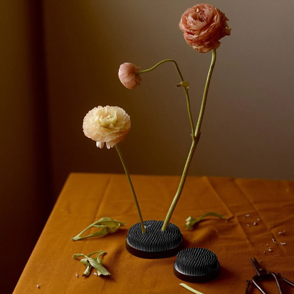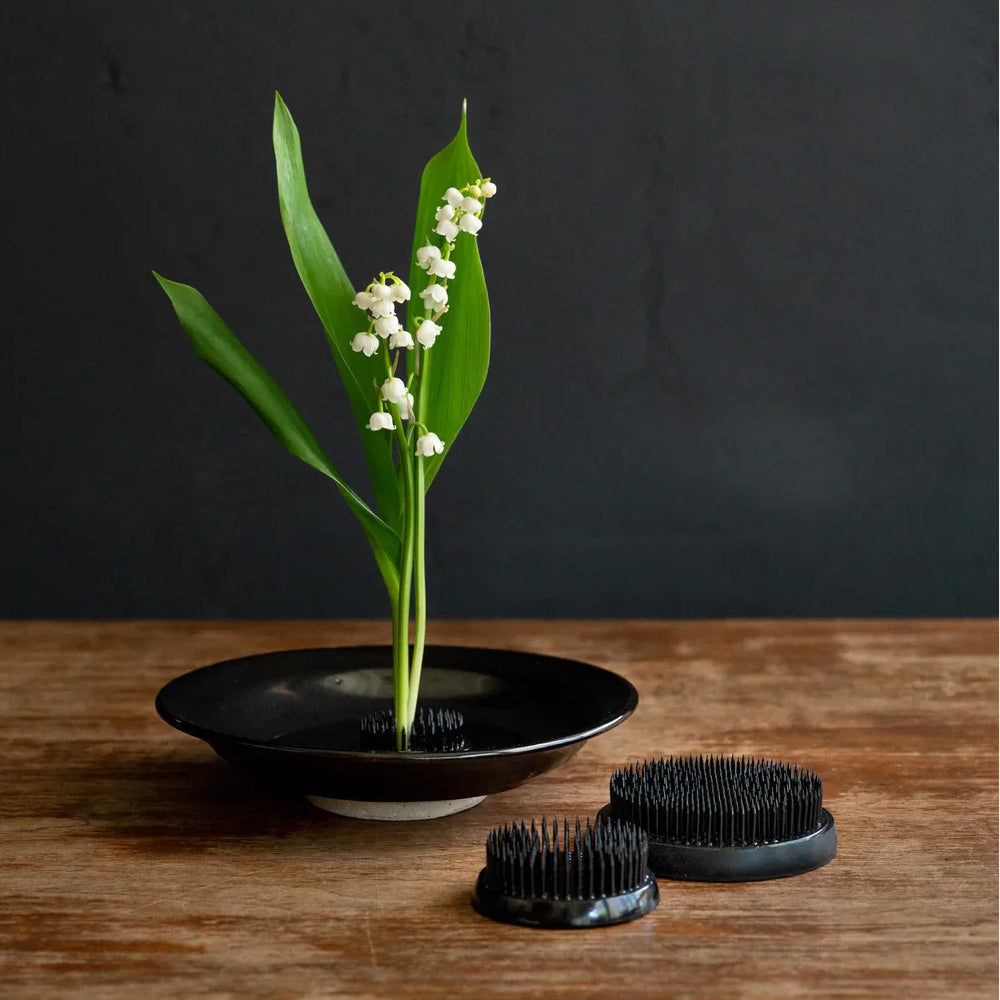 Introducing the Needle Bloom Flower Holder - the perfect solution for arranging multiple flowers without them floating up. Our durable black holder, weighing 200g, features metal spikes that securely hold your flowers in place. Simply cut and insert your desired flowers onto the spikes for a beautiful arrangement in any vase or holder. Keep your flowers hydrated as normal without any hassle.